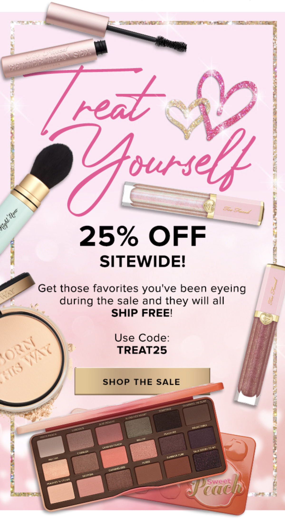Too Faced Cosmetics Canada Treat Yourself Sale 25 Off Sitewide Memorial Day 2020 Canadian Deals Promo Code